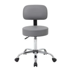 Boss Caressoft Armless Antimicrobial Medical Stool W/Back Cushion, Gray (B245-GY)