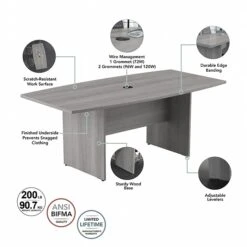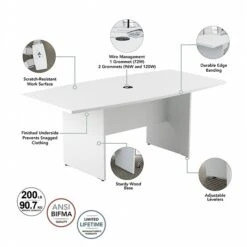 Bush Business Furniture 72W X 36D Boat Shaped Conference Table With Wood Base, White (99TB7236WH)
