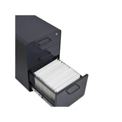 Poppin Stow 3-Drawer Vertical File Cabinet, Mobile/Pedestal, Charcoal, Letter/Legal, 20″D (103695)