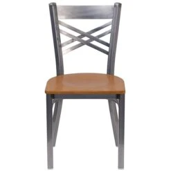 2 Pack. HERCULES Series Clear Coated ”X” Back Metal Restaurant Chair