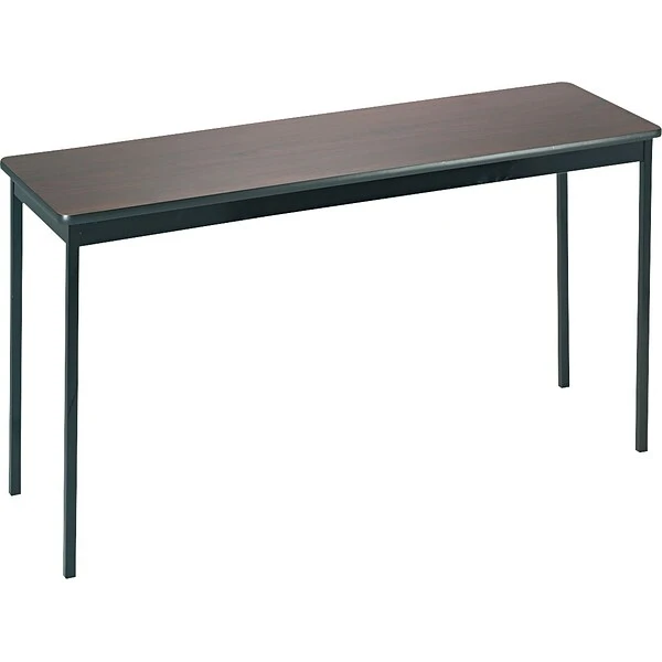 BarricksĀ® Utility table woodgrain laminate in walnut/black color measures 30″ x 60″ x 18″ and has non-folding legs for added stability. Table features special finishing on legs/apron that helps resist damage and has glides on feet to protect floor.