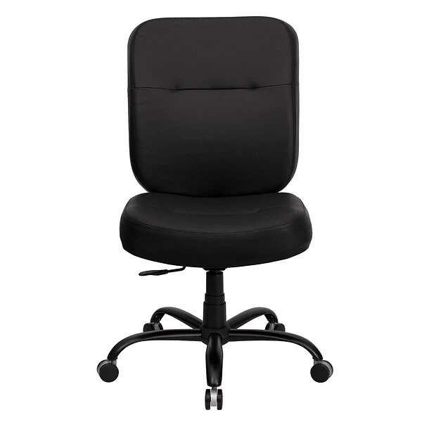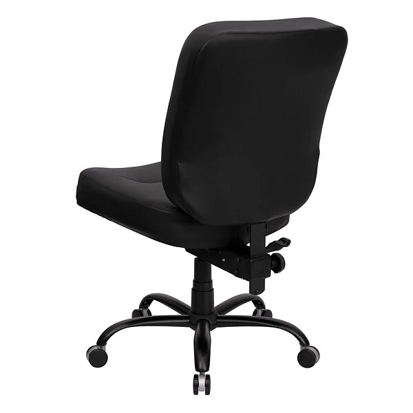 Flash Furniture Hercules Big and tall leather office chair in black color has a 5″ foam padded seat, back for added comfort and the back can be tilted. Chair facilitates back height adjustment and offers swivel control mechanism.