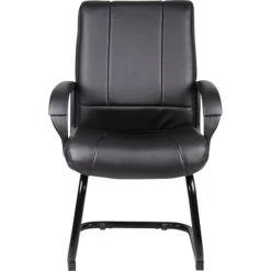 Boss Caressoft⢠Sled Base guest chair measuring 40″ x 27″ x 27″ Dia has padded loop arms for comfort and is ideal for commercial application. Chair includes faux leather seat with a height of 18 1/2″ and has a seat size of 20″ x 20″ Dia.