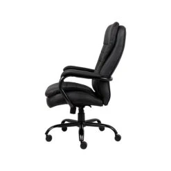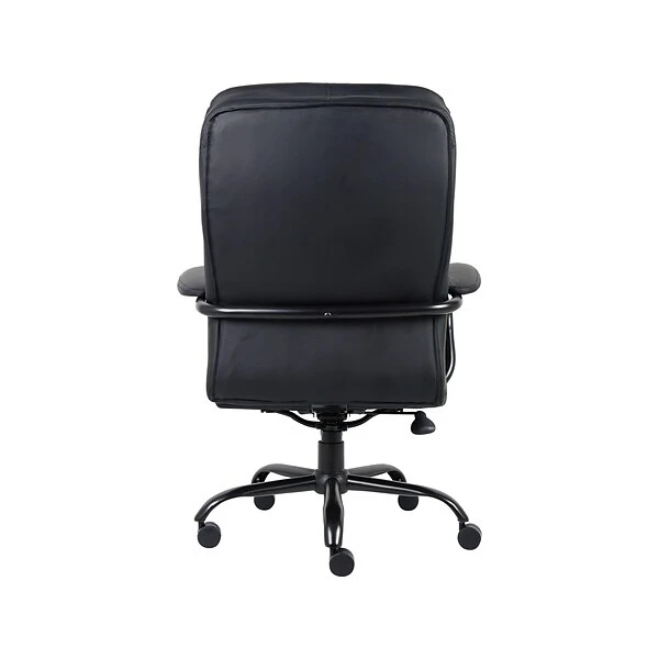 Maneuver around the office easily with this executive chair. The black vinyl material makes it easy to keep clean and provides a sleek, modern appearance. This chair height can be adjusted, so you can easily customize it to just the right level, while the 400-pound capacity makes it an ideal option for those with larger, taller body types. Featuring lumbar support, an extra-deep, extra-wide seat and plush pillow-top cushions, this chair is made to keep you comfortable when sitting for extended periods of time. This Boss Office Products heavy-duty big-and-tall chair has a five-star steel base for increased durability, making it a great choice for long-term use.