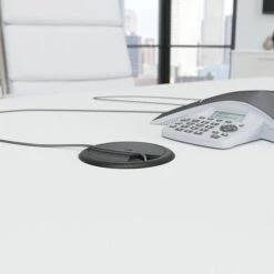 - Modern conference table includes two wire management grommets for convenient use of laptops, projectors, and other equipment