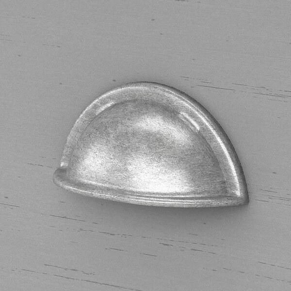 - Antique pewter cup drawer pulls complete the casual style of the farmhouse file cabinet