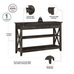 Bush Furniture Key West 47″ X 16″ Console Table With Drawers And Shelves, Dark Gray Hickory (KWT248GH-03)