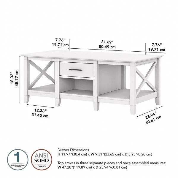 Bush Furniture Key West 47″ X 24″ Coffee Table With Storage, Pure White Oak (KWT148WT-03)