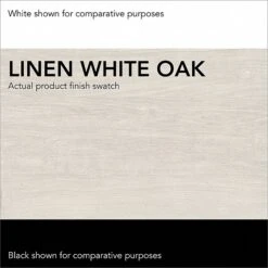 - Laminate over engineered wood in linen white oak finish