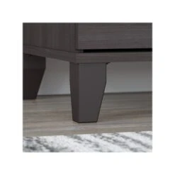 The Bush Furniture Somerset two-drawer lateral file cabinet provides an appealing home office storage solution. Two large file drawers open on smooth full-extension ball-bearing slides for easy access to letter- and legal-size documents, even those all the way at the back. The drawers are designed to open one at a time for maximum stability, making this file cabinet a safe and family-friendly addition to your home. The height of the two-drawer file cabinet matches any Somerset desk (sold separately) to allow for an extended work surface when placed side by side. Transitional styling includes tapered leg accents, your choice of attractive finishes, and contemporary metal hardware. This lateral file cabinet is tested to meet ANSI/SOHO quality standards for safety and performance and is backed by the Bush Furniture 6-year manufacturer warranty. American-made with US and imported parts.