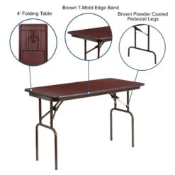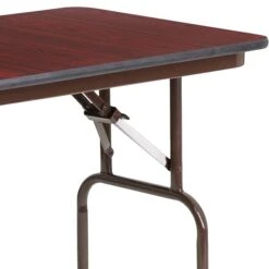 This rectangular wood folding table is beneficial in a multitude of settings that include banquet halls, banquet facilities, cafeterias, schools and in the home. The table can be used as a temporary seating solution or be setup for everyday use. The table legs fold under the table to make storage more convenient and for better portability. This table is commercial grade to withstand everyday use in the hospitality industry.