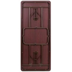 This rectangular wood folding table is beneficial in a multitude of settings that include banquet halls, banquet facilities, cafeterias, schools and in the home. The table can be used as a temporary seating solution or be setup for everyday use. The table legs fold under the table to make storage more convenient and for better portability. This table is commercial grade to withstand everyday use in the hospitality industry.