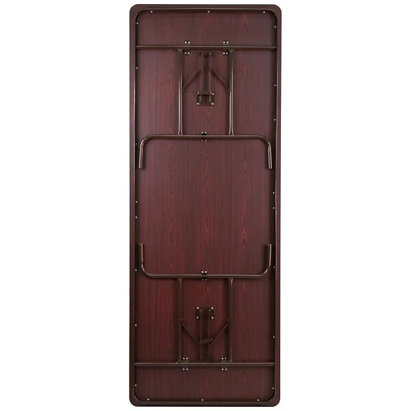 This rectangular wood folding table is beneficial in a multitude of settings that include banquet halls, banquet facilities, cafeterias, schools and in the home. The table can be used as a temporary seating solution or be setup for everyday use. The table legs fold under the table to make storage more convenient and for better portability. This table is commercial grade to withstand everyday use in the hospitality industry.