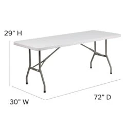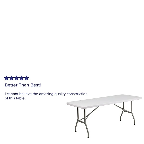 Perfect for indoor and outdoor setups, the 72-inch Flash Furniture Folding Table is apt for your portable tabletop needs. Designed with a plastic tabletop with granite white, it is resistant to stains and is easy to clean. This plastic folding table blends well with the existing decor and its rectangular design fits comfortably in smaller spaces. Available as a single table, it comes with a durable tabletop for long-term usage.