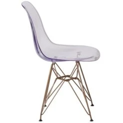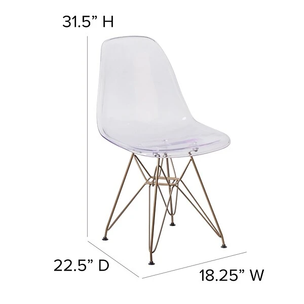 Rejuvenate your home with modern seating that will be a lovely addition as an accent chair in your living room, den, library or sitting room. This chair will add an attractive statement in your kitchen or dining room. The transparency of the chair takes up less space visually than with a solid chair to easily complement your office or waiting room. The smooth contours of the chair conform to your body allowing you to sit comfortably. The clear transparent finish with the gold geometric base add an artistic appeal.