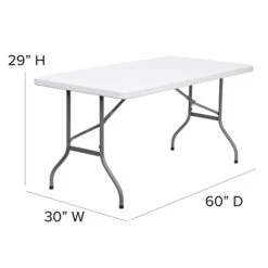 - Dimensions of rectangular table: 29″H x 60″L x 30″D