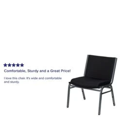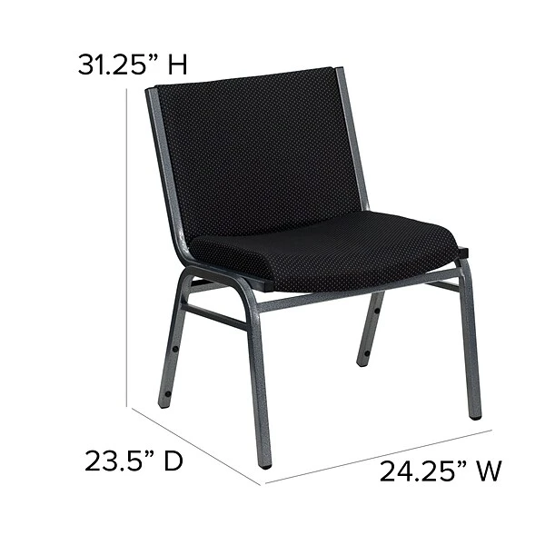 Create additional seating with this stackable extra-wide chair. The armless design provides extra space for comfort, while the steel frame and front and back stretcher bars add support for up to 1,000 pounds. This Belnick Hercules series extra wide chair is upholstered in black patterned fabric for a streamlined, low-maintenance look that’s appropriate for home or office.