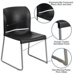 Provide comfortable seating in your lobby, cafeteria, breakroom, auditorium or office with this appealing sled base stack chair. Plastic stack chairs are popular chairs for temporary or permanent seating solutions and are ready-to-use with a fully assembled design. The silver powder coated sled base chair is stylish enough to be used as your modern dining chair and are easy to clean. Create an engaging atmosphere by using different colors in your training room or open workspace. Working in open industrial style offices can be distressing, adding colorful stack chairs around collaborative tables can make the space fun and inviting. These stackable guest chairs are designed to withstand constant use to keep up with the daily demands of your business. For transporting efficiency acquire our steel stack chair dolly.