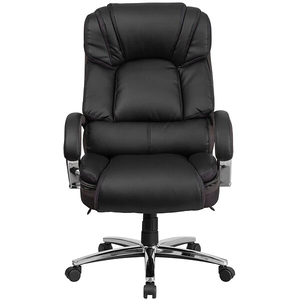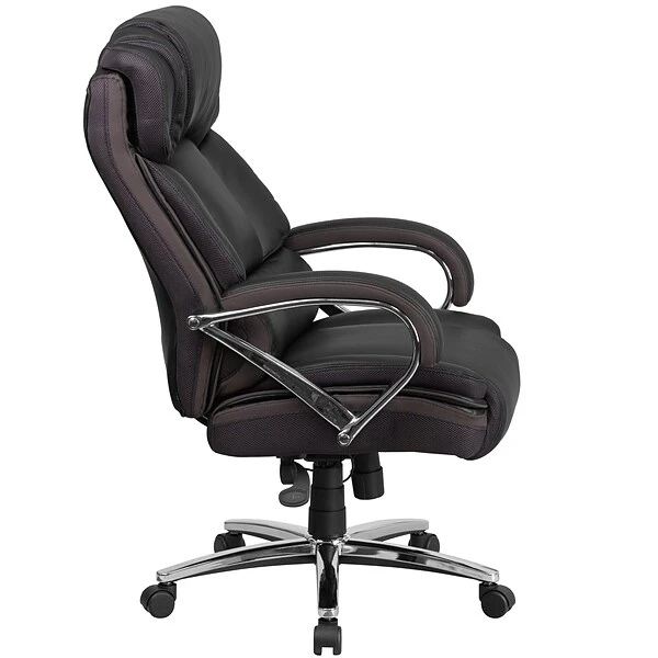 This office chair features plenty of thick, plush padding for comfort along with an embellished mesh trim throughout the chair. Finding a comfortable chair is essential when sitting for long periods at a time. Big & Tall office chairs are designed to accommodate larger and taller body types. This chair has been tested to hold a capacity of up to 500 lbs., offering a broader seat and back width. The high back design relieves tension in the lower back, preventing long term strain. The included headrest will take the pressure off of your neck while leaning back. The tilt lock mechanism offers a comfortable rocking/reclining motion. The waterfall front seat edge removes pressure from the lower legs and improves circulation. The pneumatic adjustment lever will allow you to easily adjust the seat. The chrome base adds a stylish look to complement a contemporary office space.