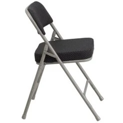 Guests will be amazed in the comfort of this Flash Furniture HERCULES Series ultra-padded upholstered metal folding chair. Whether you have planned for your guest’s arrival or had a sudden influx of family show up on your doorsteps, you’ll be well prepared with this padded folding chair. The chair provides comfort during extended meetings and social gatherings. Its 18-gauge curved powder-coated steel frame is triple-braced and double-hinged with leg-strengthening support bars to hold up to 300 lbs. Nonmarring floor glides on the legs protect your floors by sliding smoothly when you move it. Built for commercial use, this attractive chair is a smart seating solution for your next business meeting as well as in the home for family gatherings and other social events. After outdoor events, store indoors to protect the frame from extreme moisture. With nothing to assemble, this chair comes ready to service your needs.