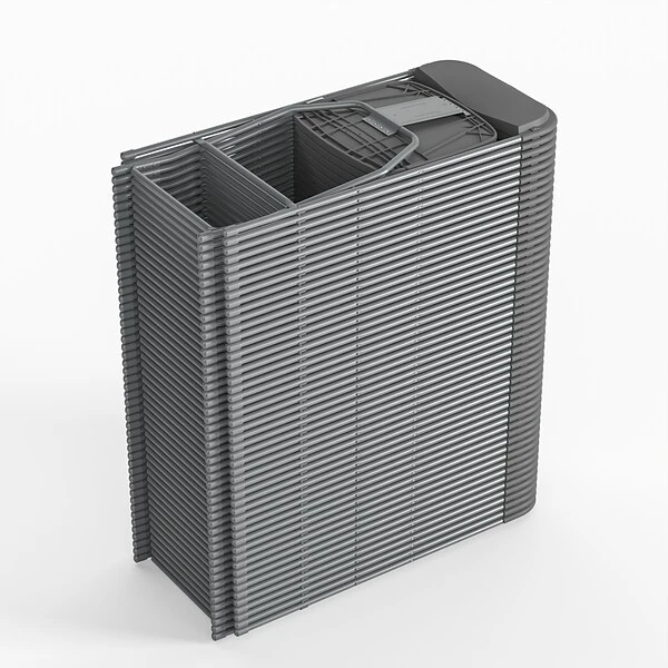 - Gray plastic chair with an 18-gauge powder-coated steel frame