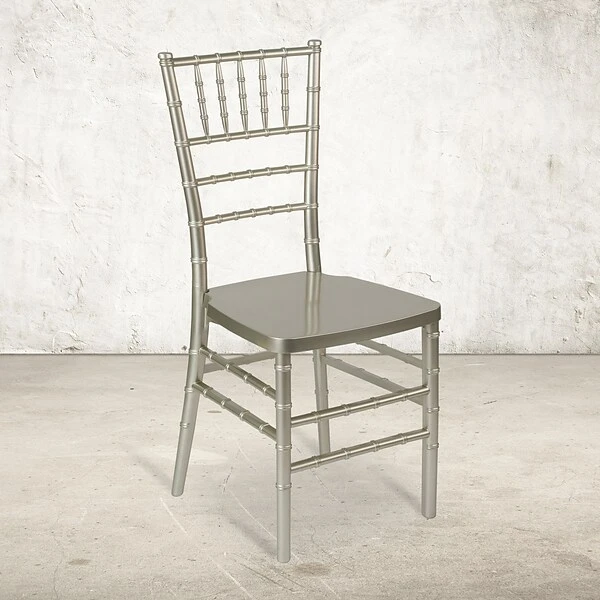 The lightweight Resin Chiavari Chair is ideal for weddings and special events. A solid colored frame doesn’t require re-painting and is UV treated.