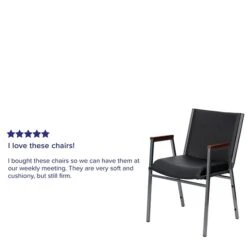 Make gatherings more inviting with this upholstered chair. Its 3-inch-thick padded vinyl seat ensures comfort during long meetings or classes, and the silver finish and cherry-capped arms add professional feel to the room. The plastic bumper guards and 500-pound weight capacity of this Flash Furniture upholstered steel chair prevent damage when forming stacks of the same seats up to 12 high.