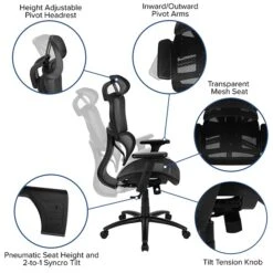 Transform your basic office chair by replacing it with this ergonomic mesh office chair brimming with comfort. You’ll stay supported by the deep curved seat and curved lumbar. The pivot headrest can be adjusted in height incrementally. Working in an office environment can take a toll on your posture if not properly supported leading to poor productivity. What makes this office chair unique is the synchro-tilt where the back and seat recline at a 2-to-1 ratio respectively, keeping the seat closer to the floor as you recline. The chair locks in 3 positions to lock in your reclined and working positions, adjust the rocking motion by turning the knob underneath the seat. The mesh back swivel ergonomic task office chair will exceed your needs in comfort and style. With functions to get you through any task you’ll enjoy this chair as your home office chair or professional office chair.