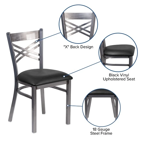 HERCULES Series Clear Coated ”X” Back Metal Restaurant Chair