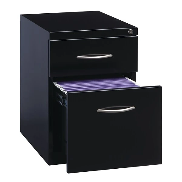Roll this commercial grade mobile pedestal file cabinet from work space to work space thanks to hidden casters that provide easy maneuverability. Solve organizational issues by keeping frequently used files within reach. Three configurations available as Box/Box/File, File/File, and Box/File, designed suit to your storage needs. Use the box drawers to keep essential office supplies, such as pens, sticky notes, staplers and paperclips tidy. The file drawers accommodates letter-size hanging file folders. Multiple color finishes and contemporary designs let these attractive and useful file cabinets blend with virtually any office setting. Durable steel construction makes the mobile pedestal file cabinet tough enough to handle daily use in busy offices. Steel ball-bearing drawer suspensions make them easy to open and close. Each drawer fully extends to help you locate all of your items. Counterweights prevent tipping. A factory-installed lock secures all drawers to keep your contents private. For added confidence, this file cabinet meets or exceeds ANSI/BIFMA standards. Greenguard Gold certified. TAA Compliant.