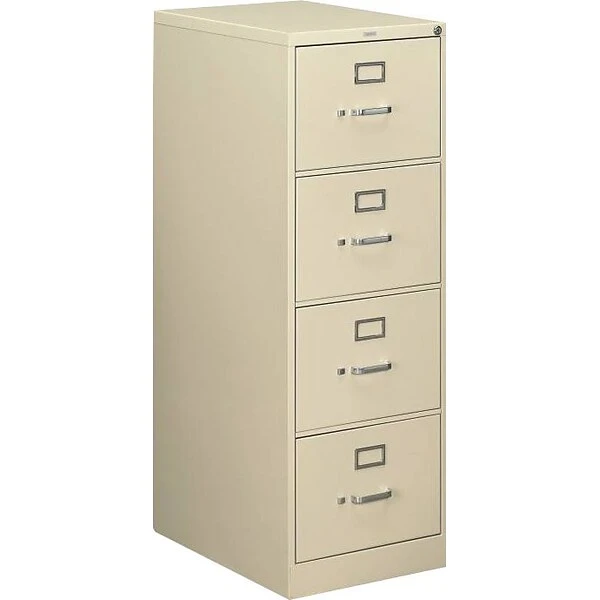 HON® 510 Series vertical file cabinet in putty color measuring 52″ x 18 1/4″ x 25″ features four drawers to offer extra storage space for file folders. Cabinet includes an adjustable wire follower in each drawer to keep legal size files upright.