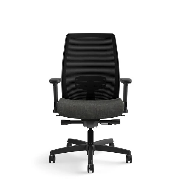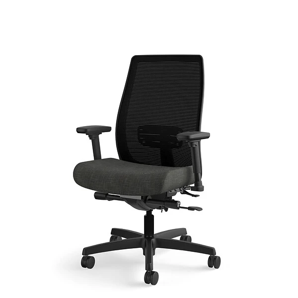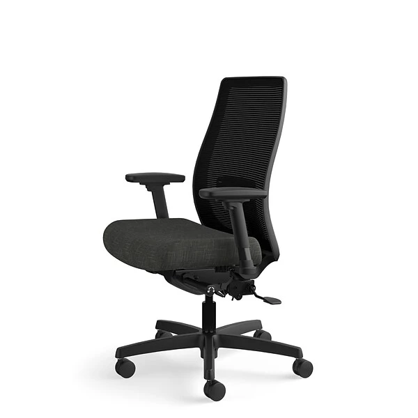 Endorse is The HON Company’s most adaptable seating collection. This mesh, mid-back task chair features adaptable comfort geometry, plus the added benefit of an easy-to-use built-in lumbar adjustment for exceptional lower back support. Synchro-tilt promotes circulation and spinal alignment, and the standard pneumatic height and seat glide controls accommodate people of varying heights. Adjustable arms help support the forearms and shoulders. The ilira-stretch back material provides natural ventilation. Warranted for users up to 300 lbs. Frame and back mesh are black and seat upholstery color is Starry Night.