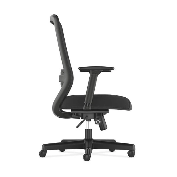 The padded, upholstered seat and mesh back give this chair an upscale feel at a compelling price. Seat upholstery color is Black and back mesh color is Black.