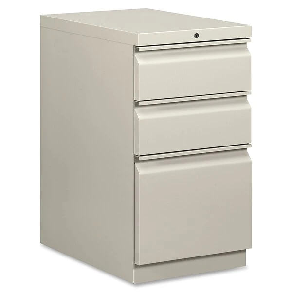 This 15″W mobile pedestal includes two box drawers for office supplies and one drawer for filling. As a cost-effective solution for desks and workstations, it increases the functionality of any size work environment and easily matches the aesthetic of other collections. Color is Light Gray.