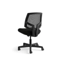 Manage business in comfort with this simple HON Volt mesh-back task chair. The tilt tension and tilt lock deliver controlled reclining, while the synchro-tilt mechanism reclines the back at a higher ratio than the seat for proper back alignment. Crafted with a breathable mesh, the back permits airflow to keep you cool throughout the busy day. The pneumatic seat-height mechanism allows easy movement to your preferred work level, while the 360-degree swivel lets you rotate quickly from task to task. Optional adjustable arms can be added to this chair for additional upper body support. This HON Volt mesh-back task chair has a wide stable base with five casters for safe, swift movement around the office.