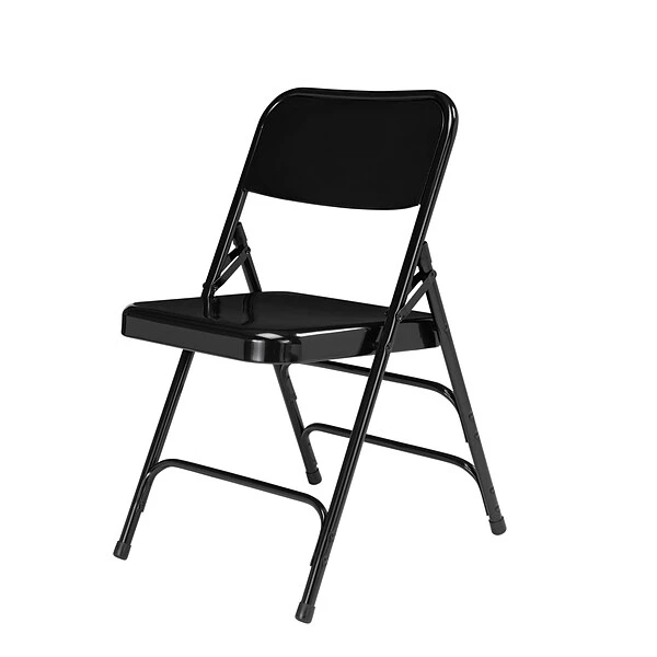 The strongest in its class, our 300 Series premium all-steel institutional-grade folding chair features a heavy-duty powder-coated 18-gauge tubular frame with a 2 1/4″ frame strengthener on each side of the seat. Three double-riveted U-braces – one in front and two in the back – securely support the double-hinged legs. The seat is designed with a waterfall-style front for added comfort. A supportive full-sized double-contoured backrest features curled safety edges and is electromagnetically tack-welded to the frame. Color-coordinated V-tip stability plugs provide added reinforcement at the frame’s junction and matching replaceable glides prevent floor damage. The 300 Series meets MAS Certified Green and ANSI/BIFMA standards.