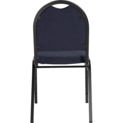 The 9200 Dome-Back stack chair is durable and classy enough to use in your busiest social setting, be it a dining room or corporate banquet hall. It features a strong square 18-gauge steel frame plus an under-seat H-shaped brace for extra support. The seat features supremely comfortable and spacious 2″-thick high-density foam padding with easy-to-clean vinyl upholstery or institutional grade fabric, and a waterfall-style edge. Plywood core within both the seat and rounded backrest which has a built-in handle for easy moving and stacking. Fortifying stacking bars and twelve plastic bumpers protect the powder-coated paint finish from scratches when the chair is stacked (up to ten units high).