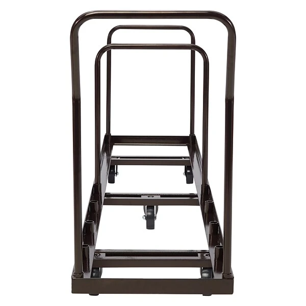 The DY-50 Chair Dolly stores and transports 50 NPS folding chairs in the vertical upright position. Features three institutional-grade tubular handles and five nylon casters (two that swivel) to enable easy maneuvering of a fully-loaded dolly. Each caster boasts a 275 lb. weight capacity for a total of 1375 lbs. Solid steel construction has a brown powder-coated paint finish.