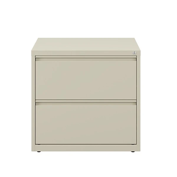 Organize your workplace and keep track of business records with this commercial two-drawer lateral file cabinet. Boasting a space-efficient design, this cabinet fits in most workplaces, adding extra storage that doesn’t get in the way. The two 30-inch-wide drawers accommodate considerable numbers of letter and legal-size files and offer easy access to records with wide drawer pulls and ball-bearing slide suspensions. This putty commercial lateral file cabinet keeps stored documents secure with a built-in lock.