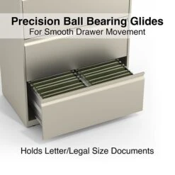 The file cabinet has two 30-inch drawers that provide enough space for either legal- or letter-sized files. Glide these drawers open and closed due to wide drawer pulls, precision ball-bearing slide suspension and drawer extension restraint. Mechanical interlock prevents both drawers from opening at the same time for safety and convenience.