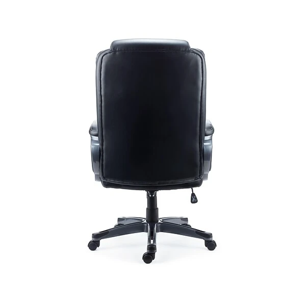 Create a more relaxing work area with this Mcallum managers chair. The soft bonded leather upholstery, thick padding and the built-in lumbar support and headrest provide exceptional comfort. This chair features curved padded arms and the tilt-tension, tilt-lock and seat-height adjustments let you customize the chair to meet your personal preferences and desk configuration. Boasting a five-star base and durable casters, this Mcallum managers chair wheels easily from the office to the conference room and back again.