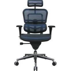 Work at your desk in comfort with the Raynor Eurotech Ergohuman high-back manger’s chair. Its blue color and mesh fabric combine style and comfort, giving you a chair that’ll look great in your office. Its fully adjustable back, headrest, and seat mean you can customize the chair to your preferences. You’ll even be able to choose between three different angles for leaning your chair back when you want to relax for a few moments.