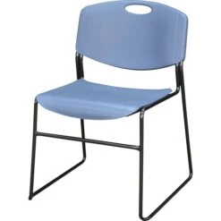Regency’s Patent-Pending Zeng stack chair is not only unique, but durable, sturdy and versatile as well. The Blue seat and back are color permeated so scuffs are less noticeable. The Zeng seat and back are treated with an anti-microbial agent, which makes it perfect for schools, waiting rooms, cafeterias and more. A reinforced black metal frame is designed to support up to 400lbs. A built in handle makes moving the chair easier and they can be easily stored away in stacks of 25. The Zeng ships assembled and is ready to use immediately.