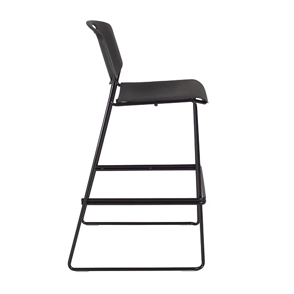 Regency’s Patent-Pending Zeng stack stool is not only unique, but durable, sturdy and versatile as well. With a seat height of 31-inches, the Zeng stack stool is a perfect choice for cafe tables, bars, lunch counters or stand up desks. The sturdy black Polypropylene seat and back are color permeated so scuffs are less noticeable. The Zeng seat and back are treated with an anti-microbial agent, which makes it perfect for schools, waiting rooms, cafeterias and more. A reinforced black metal frame is designed to support up to 250lbs and a built in handle makes moving the chair easier. The Zeng can be easily stored away in stacks of 12. The Zeng ships assembled and is ready to use immediately. All Regency chairs are backed by a 5-year limited manufacturer’s warranty on chair bases and frames and a 2-year limited manufacturer’s warranty on chair mechanisms and upholstery.