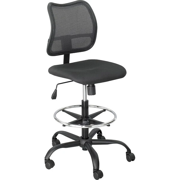 Make comfort a priority with this extended-height mesh chair. This chair features pneumatic seat height adjustment to match the chair to the height of your desk or table, an adjustable foot ring to comfortably rest your feet and a nylon mesh backing to keep your back cool while you work. This Safco Vue computer and desk chair also has a tilt tension and tilt lock, allowing you to lean back and examine your work or take a break.