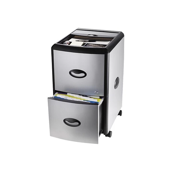 Expand your desk setup with this mobile file cabinet. Two spacious drawers offer storage for letter-size file folders, keeping important paperwork within arm’s reach. The handy organizer top provides a place to stash pens, pencils and other small accessories, while the rolling casters ensure easy movement. This Storex file cabinet locks to provide added security for the contents within.