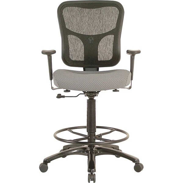 TEMPUR foam, known for its advanced comfort, is built into the seat of this Tempur-Pedic ergonomic mid-back drafting stool. Black upholstery adds extra softness, and the mesh back provides airflow. The armrests, seat height, and back height are adjustable for a customized position. Achieve proper posture with the built-in lumbar support.