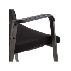 - Features four-legged base with footrest and fixed armrests