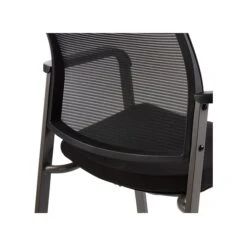 Elevate the appearance of your lobby or reception area with this guest chair. The metal frame provides sturdy support and stability. Featuring a mesh back, this chair allows free air circulation for comfort, and the ANSI/BIFMA-compliant design supports safety and reliable performance. This Prestige Esler black guest chair has a contoured padded seat for all-day comfort and curved armrests for enhanced upper-body support. The height of the seat remains the same for both.