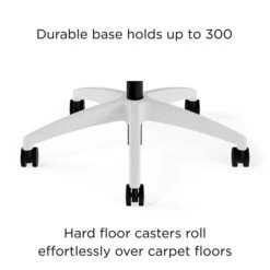 - Hard surface casters roll quietly and effortlessly on carpet floor types